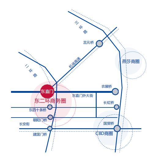 來福士、銀座、CBD商務(wù)區(qū)、簋街、使館區(qū)、三里屯、多家五星酒店。
