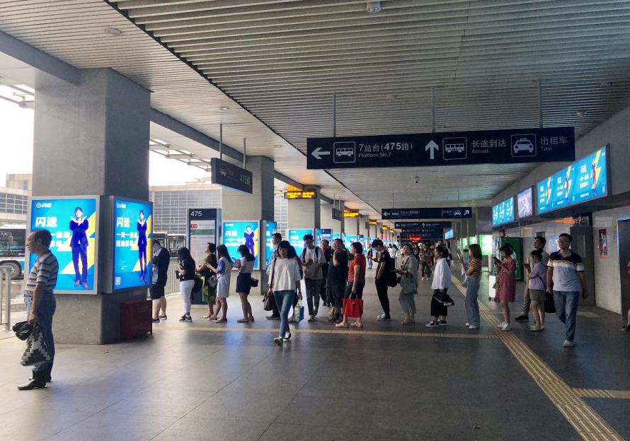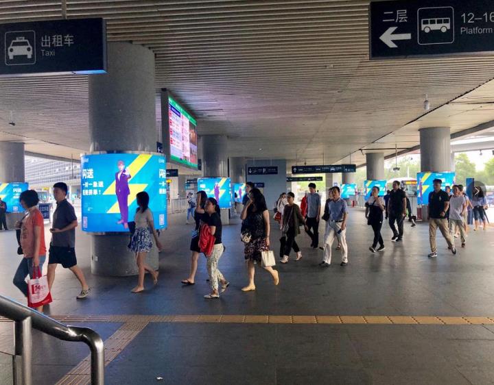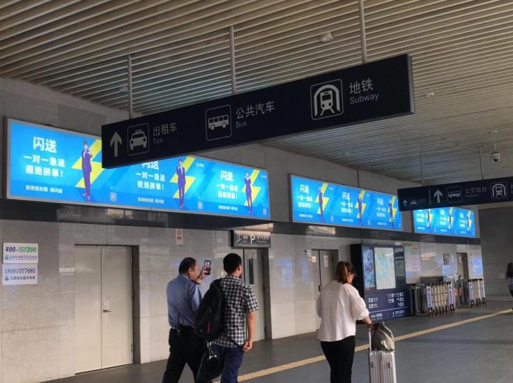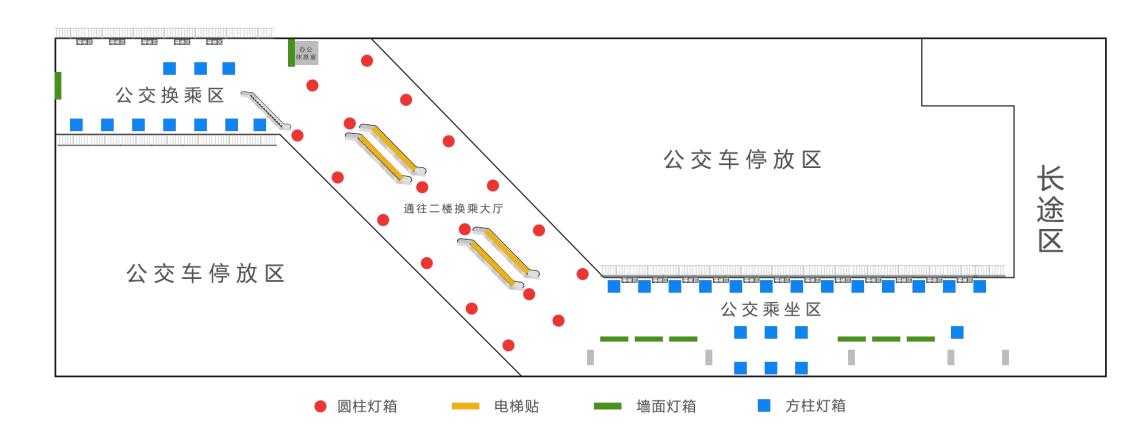 二層換乘大廳,廣告環境干凈整潔,畫面效果統一,極具視覺沖擊力