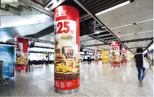 | 創(chuàng)意媒體-南京地鐵竹山路站社區(qū)站廣告 線路:1號線 組合形式 :站廳包柱8面+玻璃貼38塊 媒體費(fèi)(元/4周):180,000 制作方式:寫真噴繪 制作費(fèi)(元/次):16,800 |