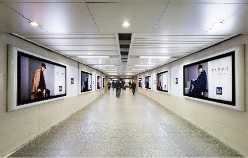 | 創(chuàng)意媒體-南京地鐵新街口站20號品牌通道廣告 線路:1、2號線 組合形式:100㎡頂天立地墻貼 媒體費(fèi)(元/52周):350,000 制作方式:寫真噴繪 制作費(fèi)(元/次):30,000 |