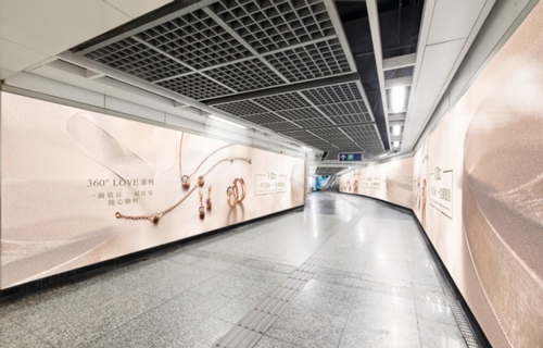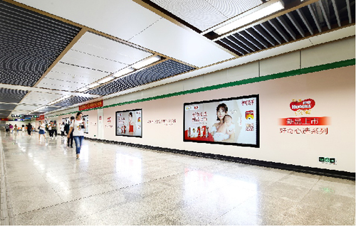| 創(chuàng)意媒體-南京地鐵新街口站8號品牌通道廣告 線路:1、2號線 組合形式:73.34㎡ 墻貼 媒體費(fèi)(元/52周):600,000 制作方式:UV寫真燈布 制作費(fèi)(元/次):22,002 |