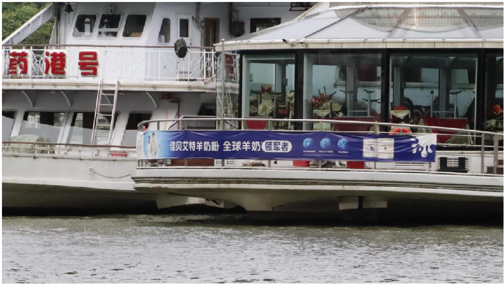 船體廣告多采用燈箱或者LED燈的形式,顯示在游船側面的醒目位置。