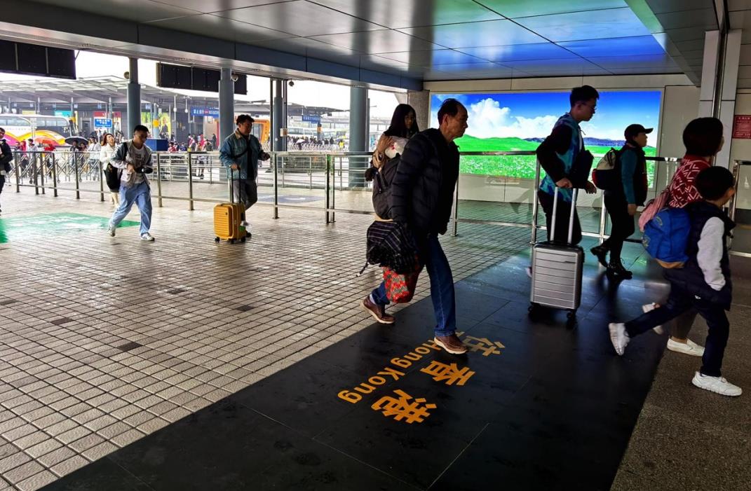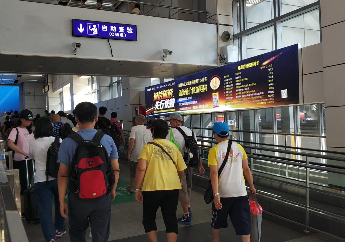 禁區(qū)內(nèi)排隊出入境的通道上,深港跨境口岸媒體,重要提示,吸引消費者蘭注