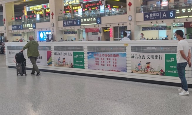 漢口站檢票閘機口進站走廊立式燈箱廣告