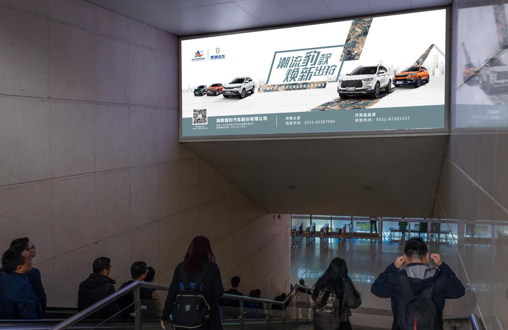 1、媒體處于東出站口樓梯兩側(cè),是濟南西站到達層面積最大媒體;