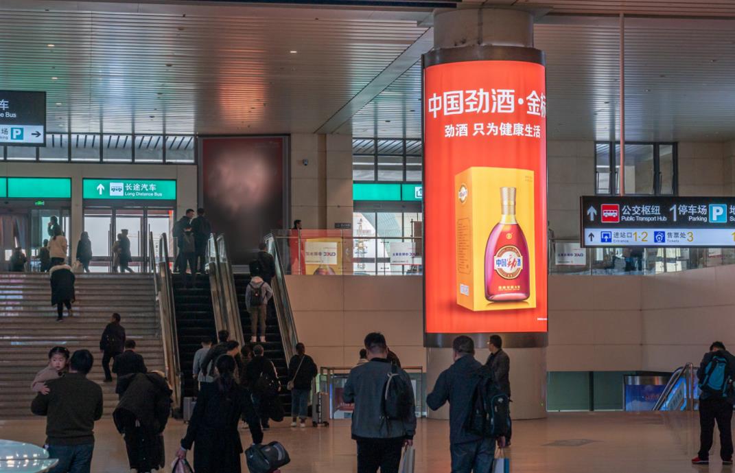 1、位于進站大廳,所有進站候車乘客必經(jīng)之地,無任何障礙物影響視線,燈光效果絕佳,印象深刻;