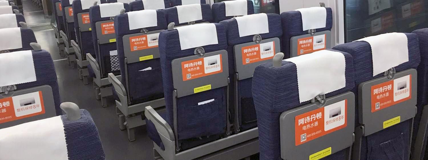 位于所有高鐵車廂內(nèi)行李架下方,對稱發(fā)布,氣勢磅礴,視覺沖擊力強(qiáng),無論坐、立、行,都能有絕佳的視覺效果,利于品牌整體性展示。