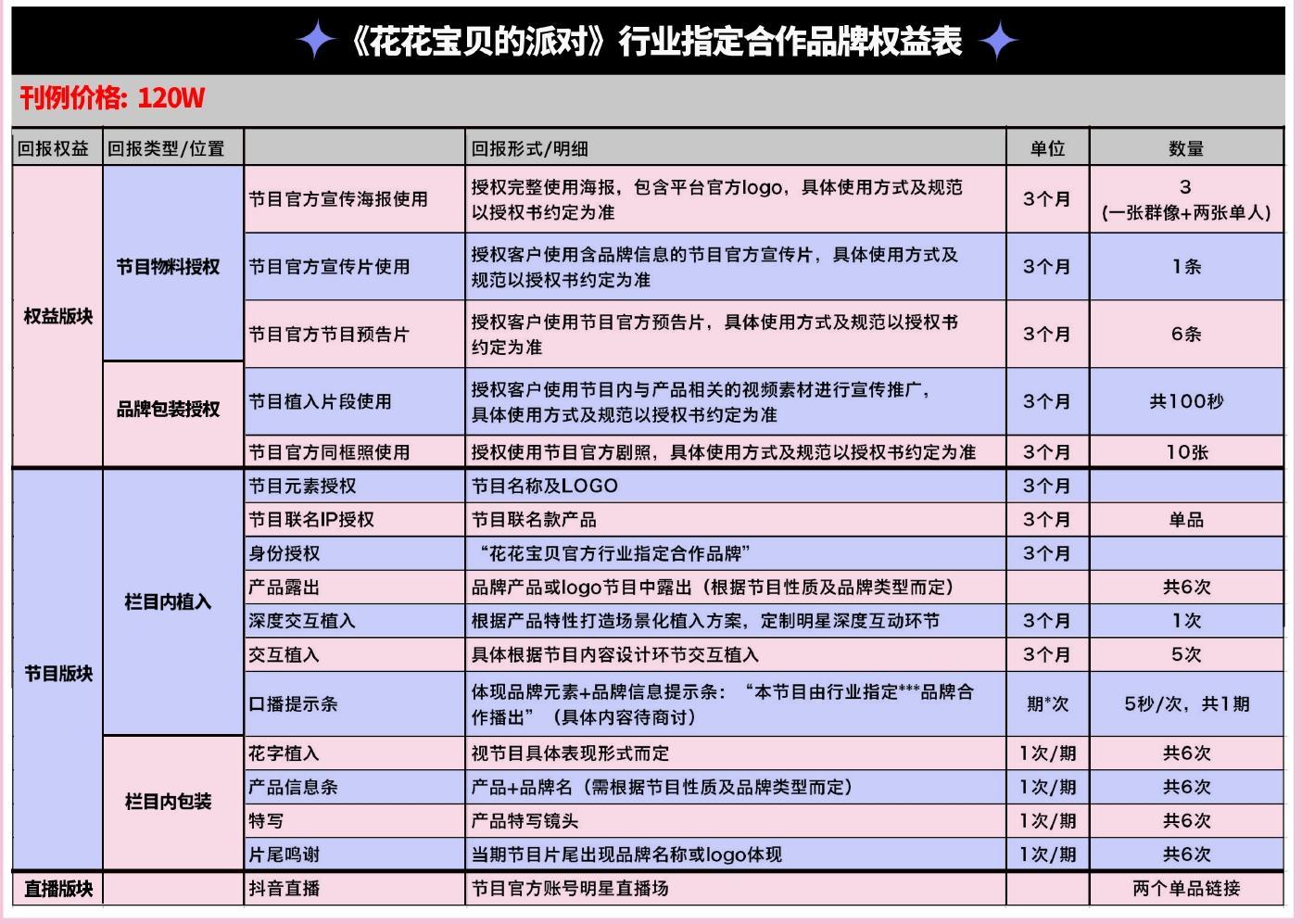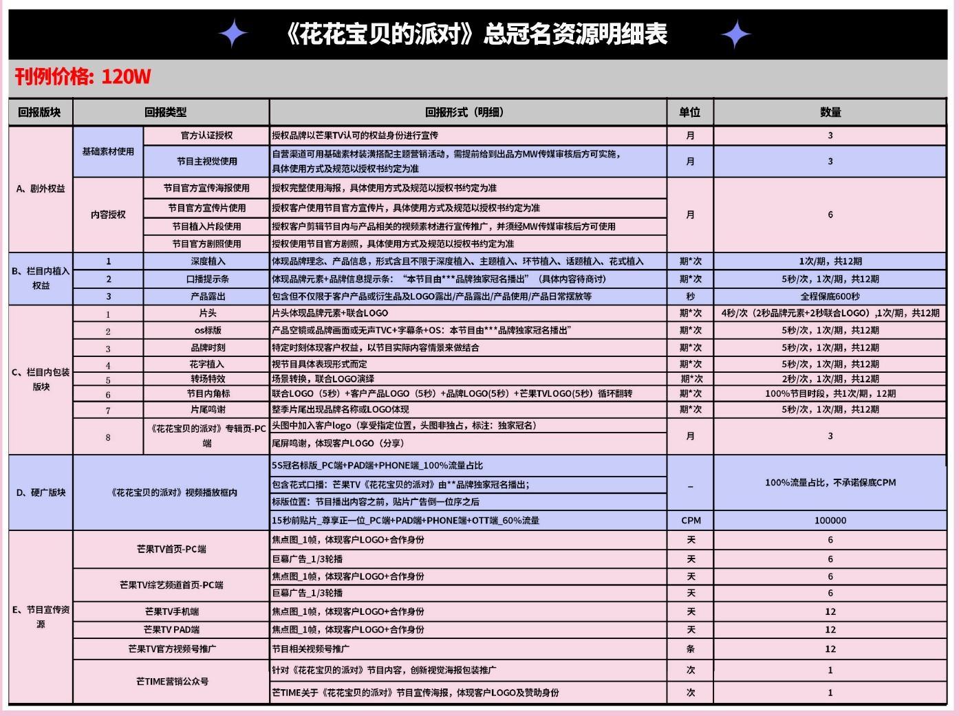 《花花寶貝的派對(duì)》綜藝總冠名資源明細(xì)表
