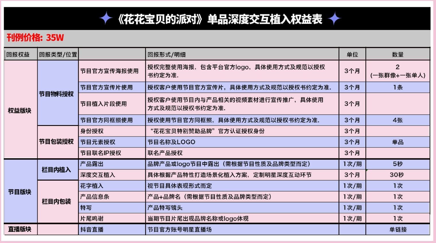 《花花寶貝的派對(duì)》單品深度交互植入權(quán)益表