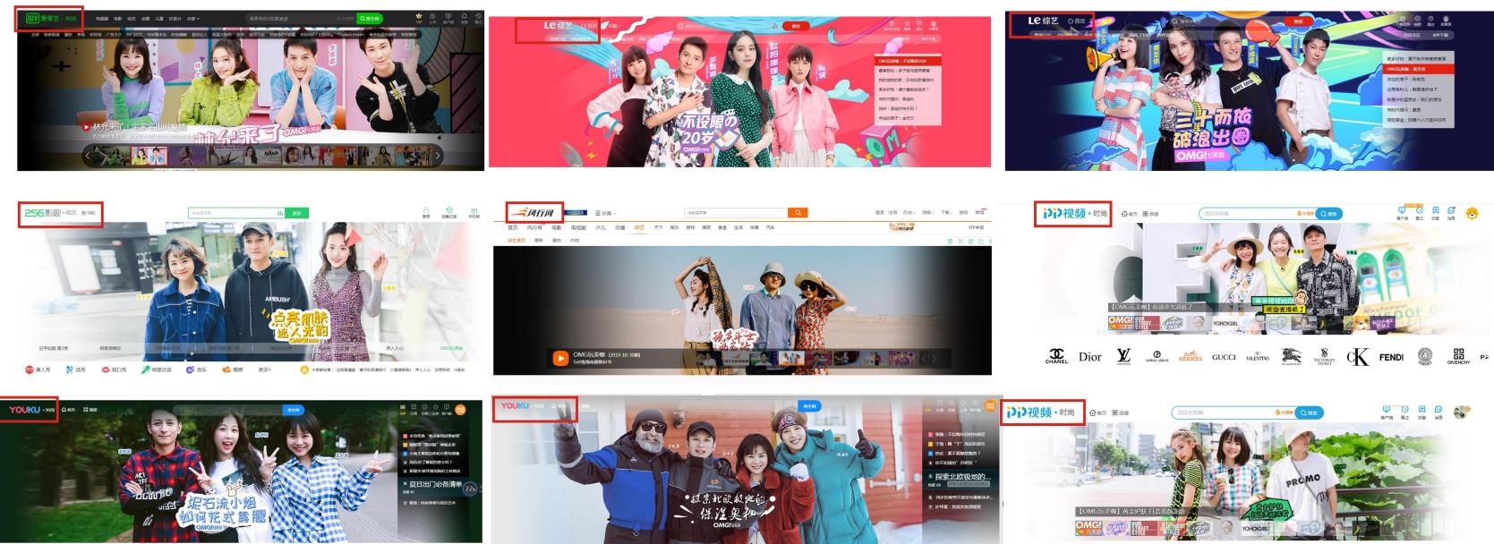 與優(yōu)酷視頻、愛(ài)奇藝、騰訊視頻、樂(lè)視網(wǎng)等數(shù)三十家網(wǎng)絡(luò)媒體合作,在芒果TV、騰訊視頻、愛(ài)奇藝、優(yōu)酷視頻、嗶哩嗶哩、樂(lè)視網(wǎng)、PPTV聚力、搜狐視頻、今日頭條、西瓜視頻、一點(diǎn)資訊等門戶網(wǎng)站均建立《OMG玩美咖》專區(qū),提供視頻資料庫(kù),首頁(yè)閃圖推薦引流。