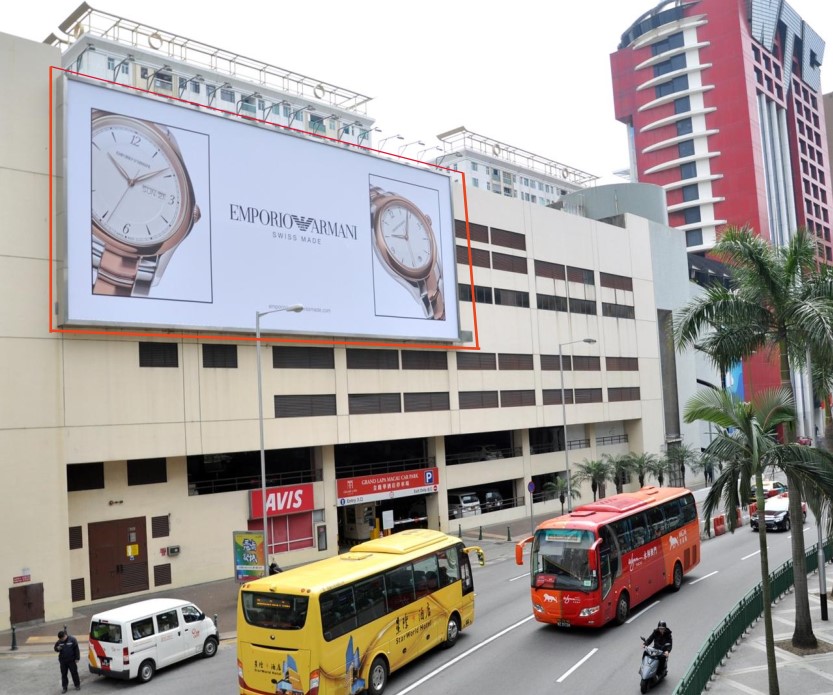 此廣告位位于澳門半島新口岸填海區,連貫澳門西南區至東北區和凼仔的主干道上,座落著澳門最多的娛樂場酒店群與高端商業區,為游客,白領坐車每天駕車的必經路線,車流量為每月90萬架次