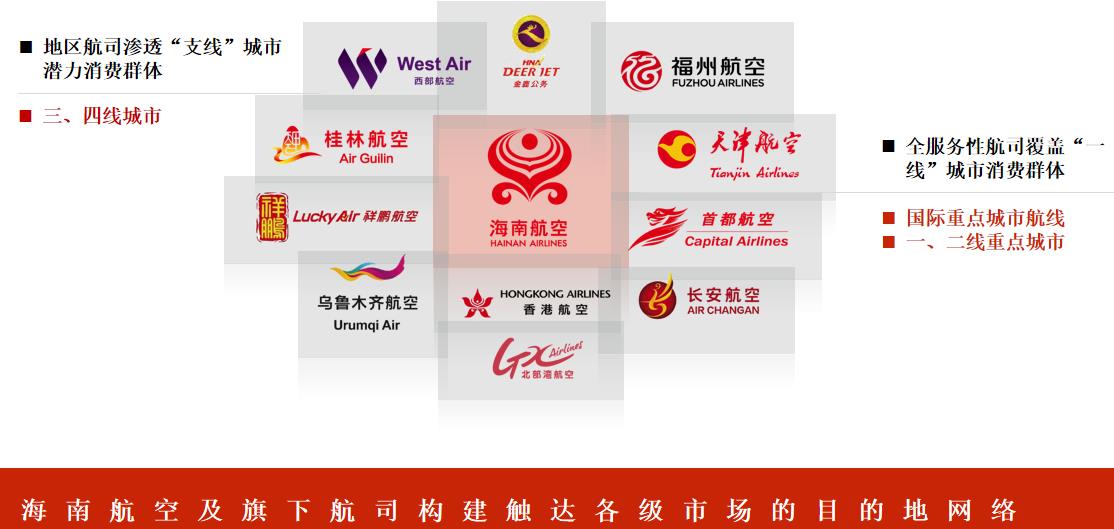 海航集團(tuán)旗下參控股航空公司16家,參與管理機場13家,機隊規(guī)模近900架;開通國內(nèi)外航線約2600條,通航城市240余個,年旅客運輸量逾1.44億人次。