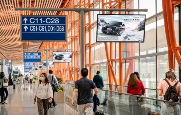 大興機場貴賓區入口大廳、休息區、通道以及餐廳區域電子刷屏廣告