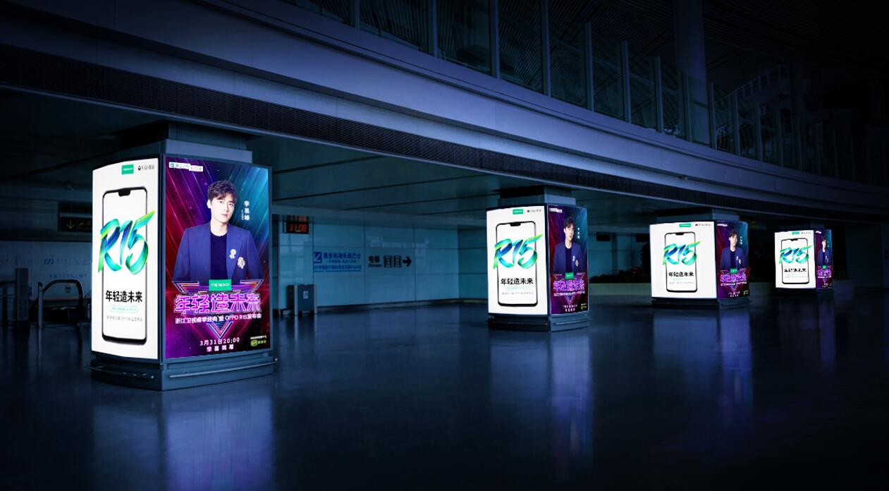 天津濱海機場廣告---濱海機場T2航站樓到達夾層通道出口四面包柱燈箱廣告