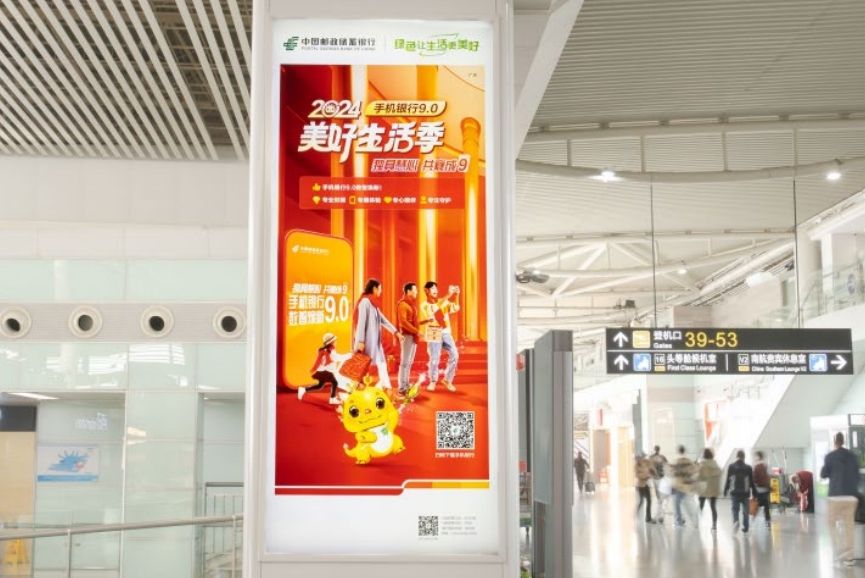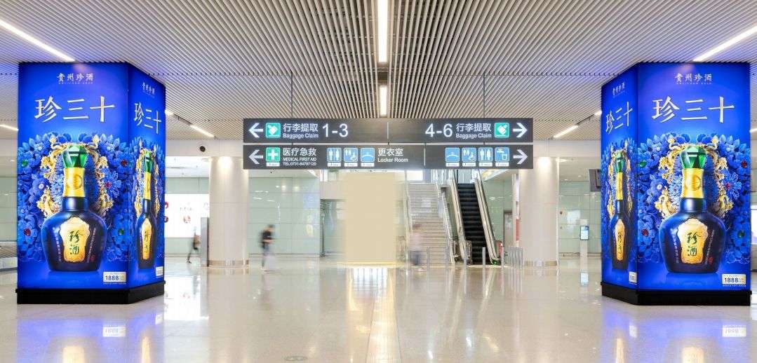 長沙黃花機場廣告 –T1 航站樓出發廳安檢前方形包柱燈箱廣告