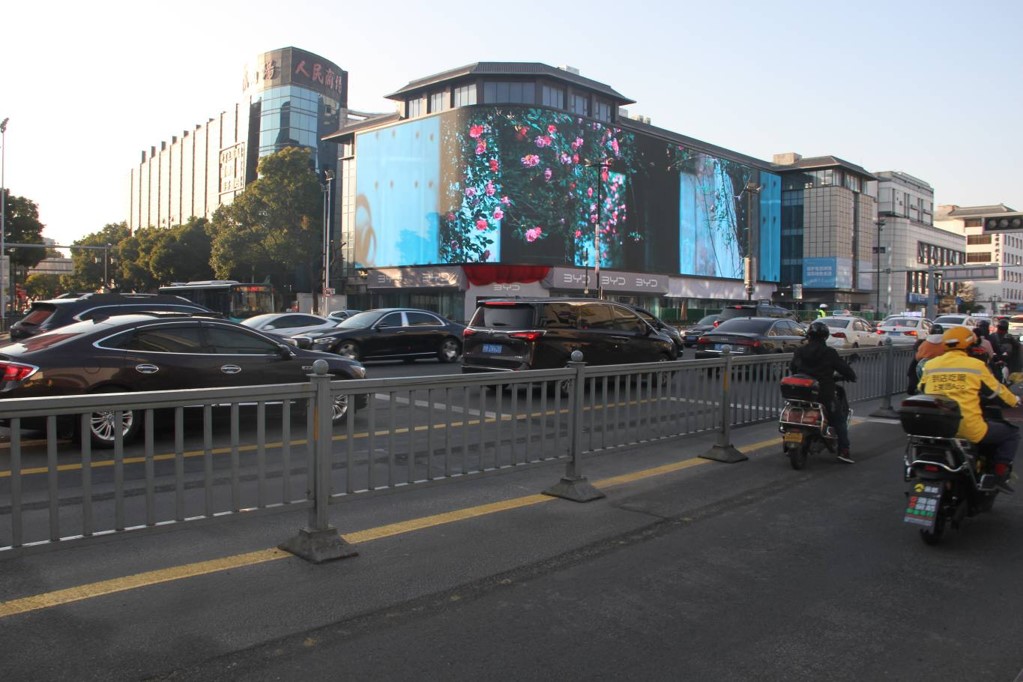 該屏位于蘇南第一商圈——蘇州觀前街核心位置,處蘇州黃金主干道南北向人民路、東西向干將路交匯,輕軌黃金干線一號線與四號線交匯,緊鄰的景德路是串聯(lián)觀前商圈與石路商圈的最便捷通道,人車流量巨大,是蘇州的網(wǎng)紅地標(biāo)屏。
