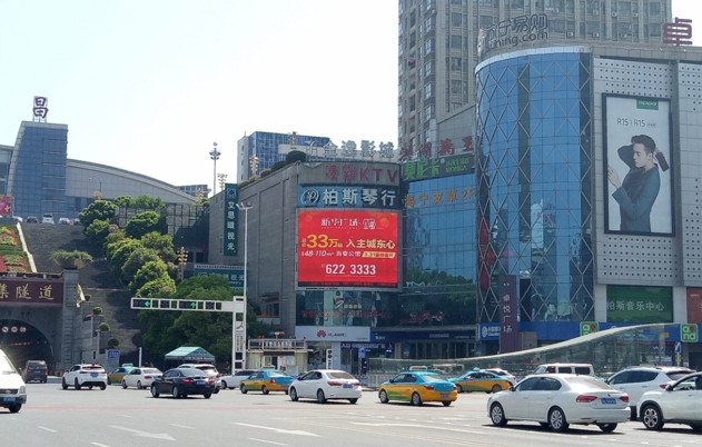 宜昌盛景廣場廣告屏位于五一廣場東北處,宜昌主干道東山大道與桔城路交匯處,桔城路直達宜昌東站,車流密集,長期擁堵,廣告觸達率高。