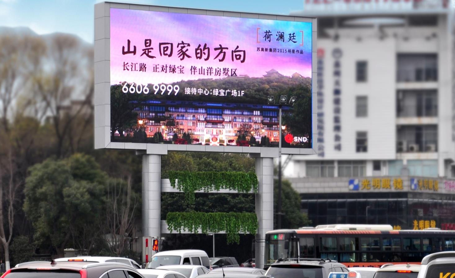 該位置位于蘇州主干道獅山路,該路段車流量巨大,周邊有各大銀行、寫字樓、龍湖天街,金鷹百貨,新城花園酒店、香格里拉等眾多星級酒店、高檔娛樂場所、國際經(jīng)貿(mào)大廈、高檔住宅等,該媒體地處高新區(qū)CBD商業(yè)中心,其優(yōu)越的廣告位置及氣勢恢弘的廣告形式都給人視覺上帶來強大的沖擊力和震撼力!