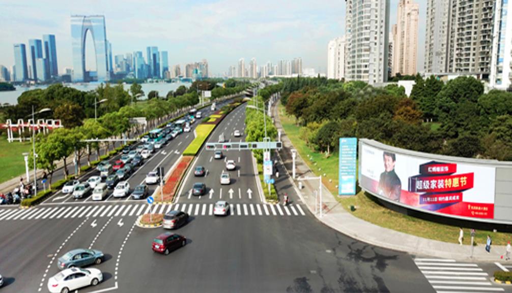 全新更新的戶外高清顯示屏,加之該廣告位于干將路相門橋段,是園區(qū)與市區(qū)的最繁華的出入口;