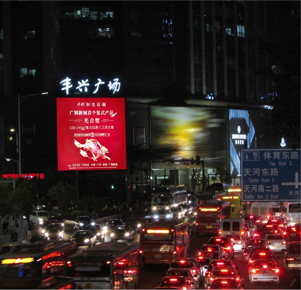媒體位置:廣州天河路與天河?xùn)|路交匯處豐興廣場東北角LED屏