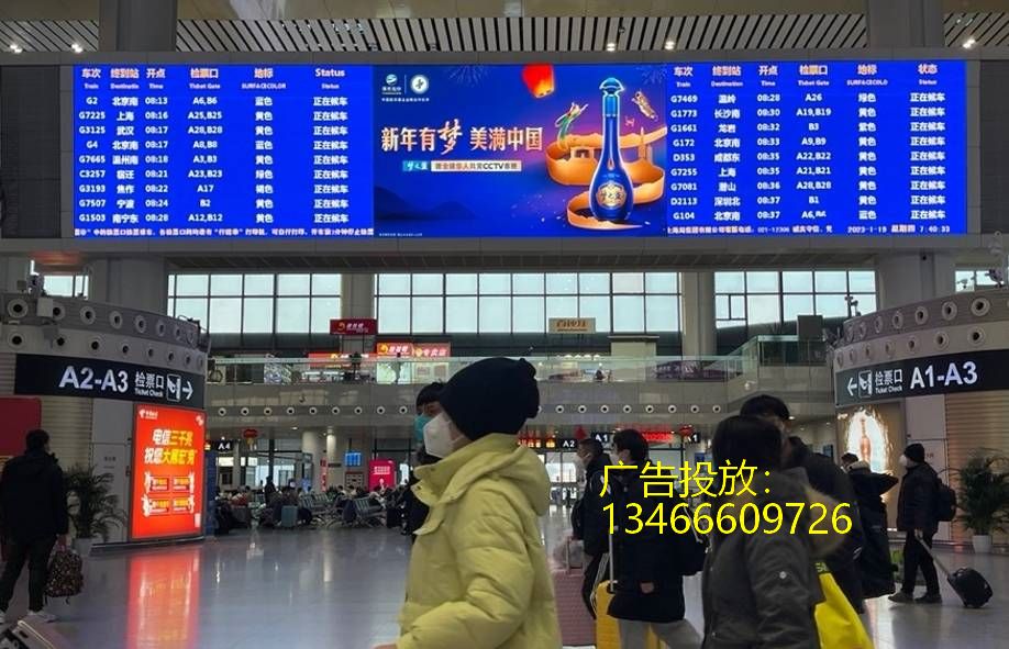 南京南站候車大廳中央服務中心的三面大屏廣告,是品牌展示的新舞臺。這里地理位置優(yōu)越、人流量大、廣告效果好,而且費用合理、投放靈活。如果你想要快速提升品牌曝光度和影響力,那么不妨考慮一下這里吧!讓你的品牌在南京南站這個交通樞紐中閃耀光芒,成為旅客們心中的明星品牌!