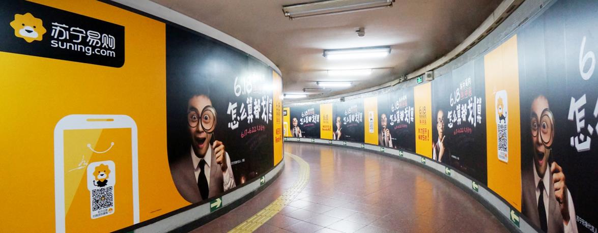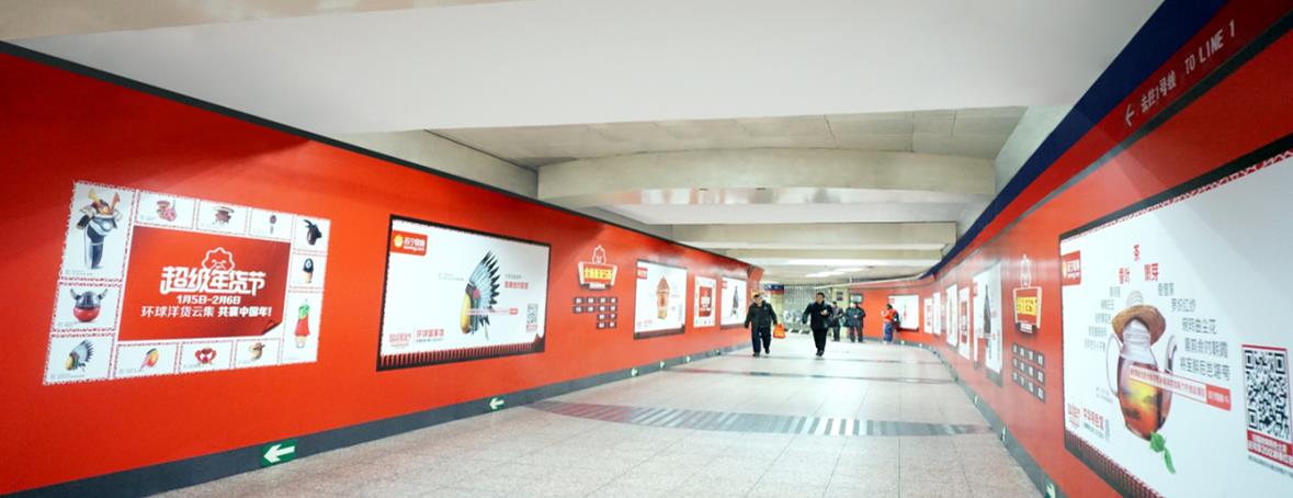 復(fù)興門站是北京地鐵1號線與2號線的換乘站,客流量極大。復(fù)興門大型墻貼面積大,視覺沖擊力強(qiáng),撲面而來的視覺盛宴,完全吸引乘客目光