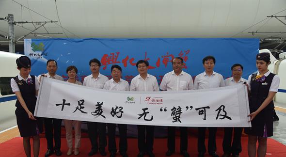 “興化大閘蟹”滬寧線高鐵列車冠名廣告首發暨開捕季啟動儀式在上海虹橋高鐵站舉行。