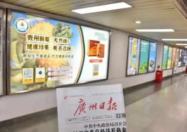 在廣州地鐵1號線、8號線兩條黃金線路上,以“貴州刺梨 天然維C 健康珍果美名遠揚”“貴州生態美食品 吃出健康好味道”為宣傳主題的地鐵廣告正式上線。