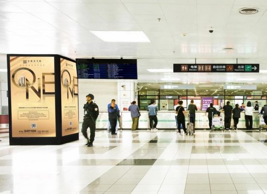 珠海金灣機場廣告-一層到達(dá)迎賓廳包柱燈箱廣告